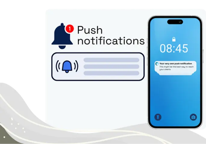Builderly включва вградени функционалности за известия в приложението и push известия, което ви позволява да държите потребителите информирани и ангажирани. Независимо дали става въпрос за напомняне на клиентите за предстоящи срещи, уведомяване за промоции или автоматизиране на персонализирани известия, нашата платформа улеснява настройката и управлението на известията в сайта или приложението ви.