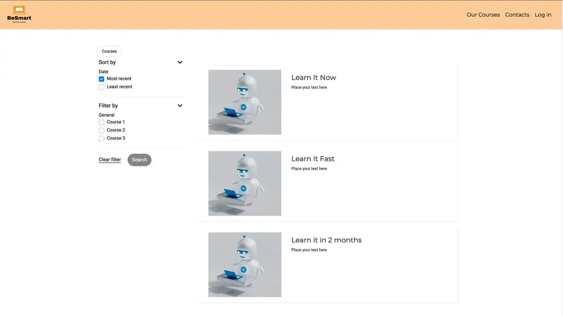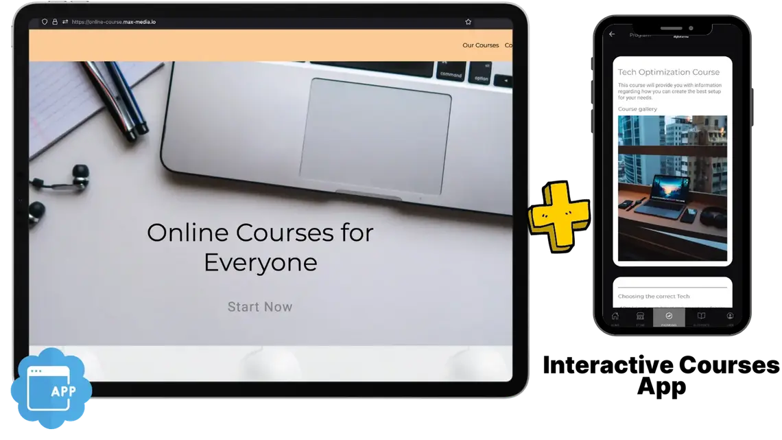 Interactive Courses е темплейт, предназначен за презентационен сайт + интерактивно мобилно приложение с курсове и абонаменти.